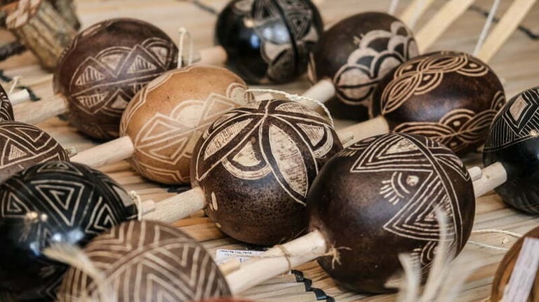 Leve a medicina da floresta com você. O Grupo Wyanã apresenta uma curadoria de artes ancestrais consagradas em rezo: maracás de poder, cachimbos sagrados e adornos tecidos com sementes e grafismos de proteção.